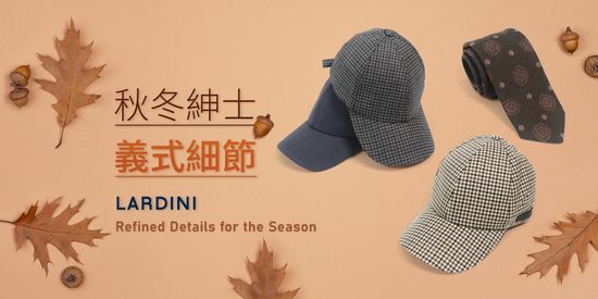 LARDINI 羊毛格紋棒球帽 / 墨灰千鳥格